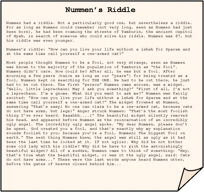 Nummen had a riddle. Not a particularly good one, but nevertheless a riddle.
